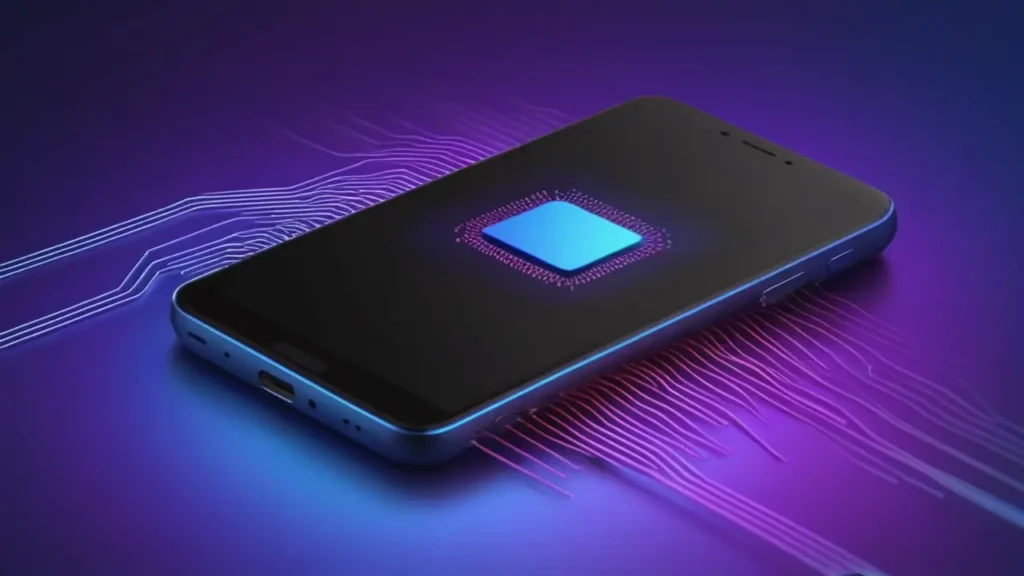 Teléfono procesando datos de forma abstracta